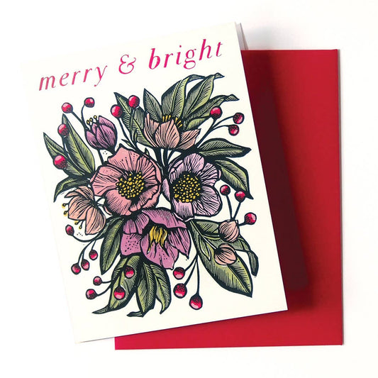 'Merry & Bright' Linocut Holiday Card by Hawk and Rose