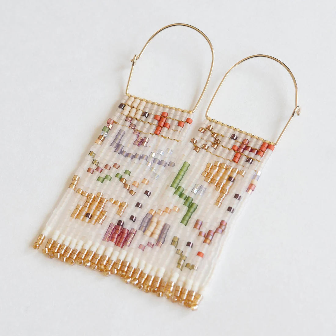 The latest slim tapestry style earrings - A thinner body and a sweet half hoop to dangle from!