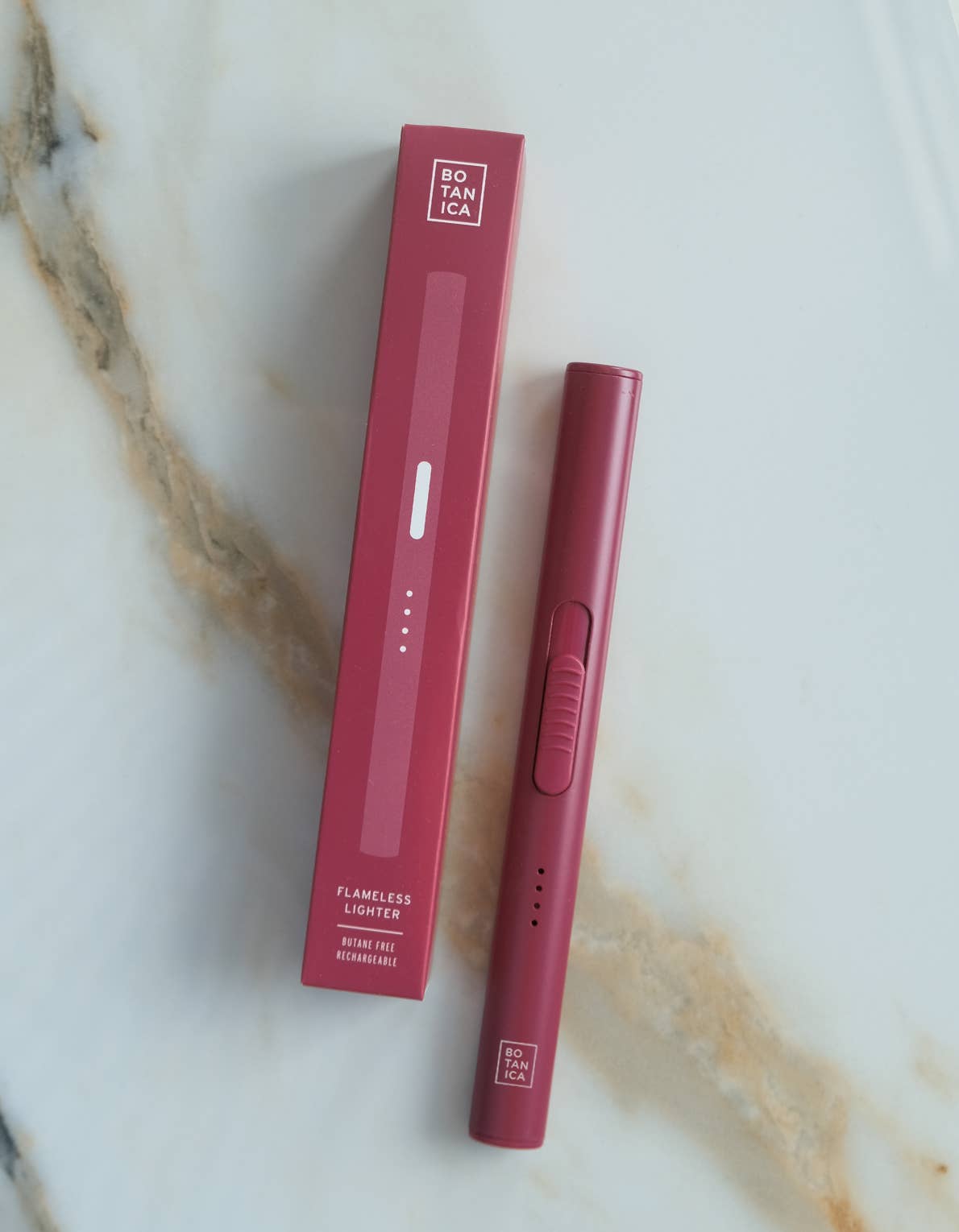 Botanica's Flameless Lighters utilize single ARC technology, making for a clean, butane-free ignition for every candle lighting (and more!) Our Flameless lighters recharge through a convenient USB port. A safety switch is included to make accidental lights a non-issue. Packed in a colorful gift box with a mini 5" USB-C cable, these are a thoughtful & handy addition for candle gifting. • Packaged in Gift Box, includes Charging Cord + Instructions/Safety Sheet.
