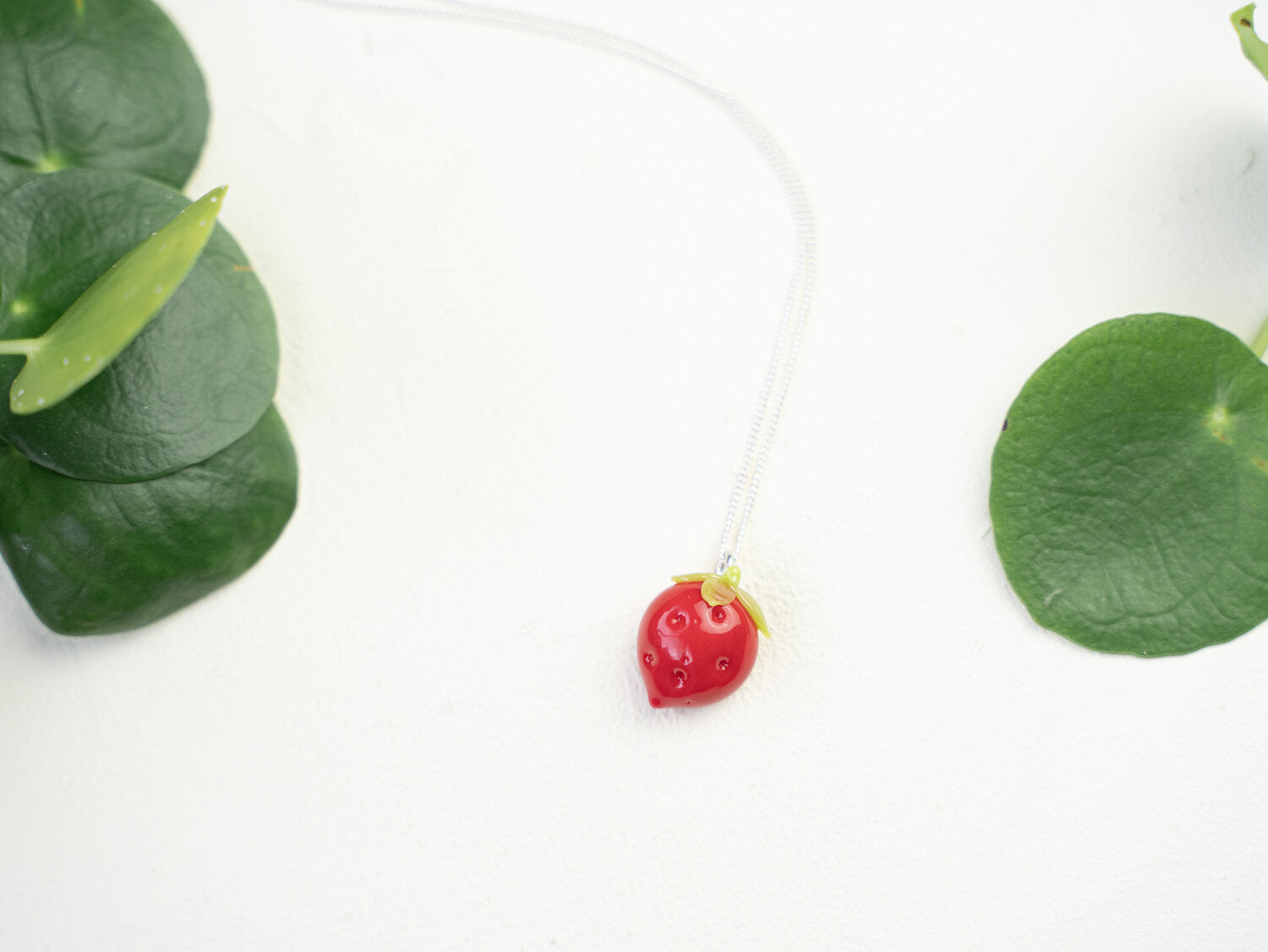 Fruits Necklace by Minori Takagi. Handmade in Vancouver, BC. Materials include Glass, Sterling silver 18" chain.
