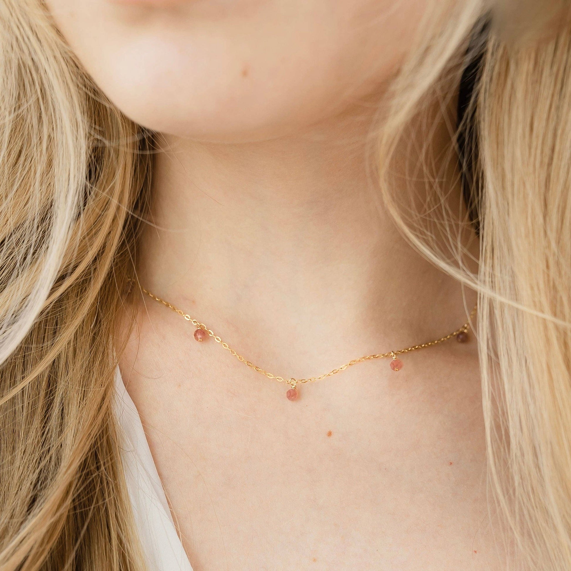 The Primrose Necklace is lovingly handcrafted to create a piece as unique as yourself. Giving off an array of delightful charm, this necklace is the perfect accessory for your favorite outfit. * 14K Gold Filled or 925 Sterling Silver chain with natural freshwater pearls or other natural stone pendants * Tarnish resistant, hypoallergenic, waterproof, and sensitive skin-friendly * Length: 16”.