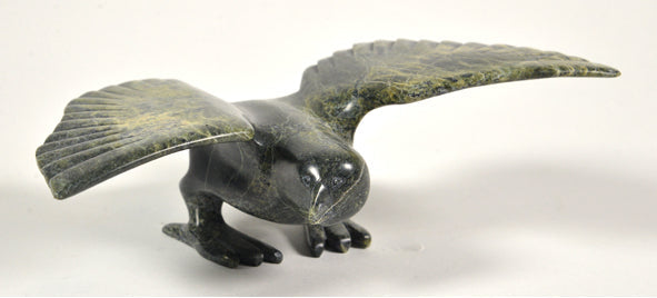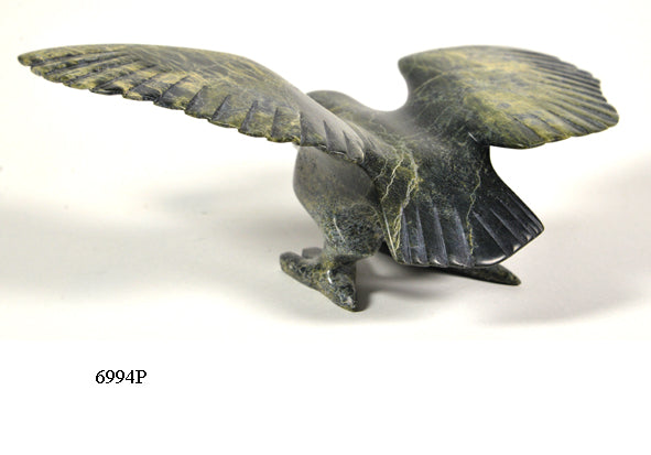 Stone carving titled "Snow Bunting" created by Killiketee Killiktee. Dimensions are approximately 3"x 8".