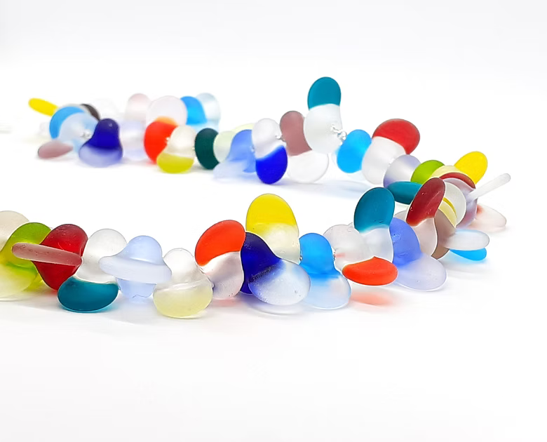 Introducing the Spectrum Necklace, a handmade glass piece by Tasci Designs. Each unique necklace adds vibrant colour with hues from blues to oranges, promising quality and creativity. Experience Tasci Designs' craftsmanship with every piece. Spectrum Necklace is 1.5 cm x 1.05 cm x 23”.