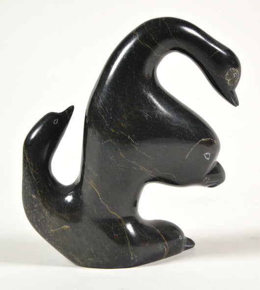 Stone carving titled "Transformation" created by Ningeosiaq Ashoona. Dimensions are approximately 5.5" x 5".