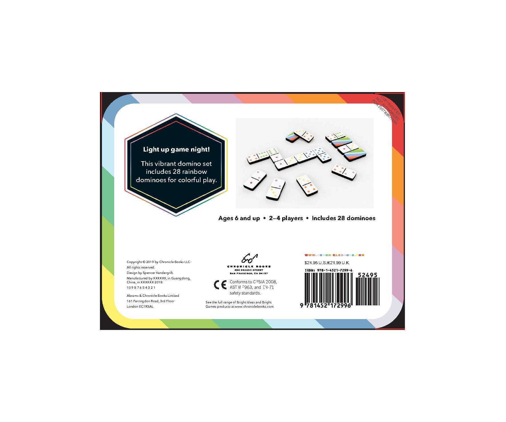 The back of each domino is a vibrant rainbow gradient, while the face side has colored dots