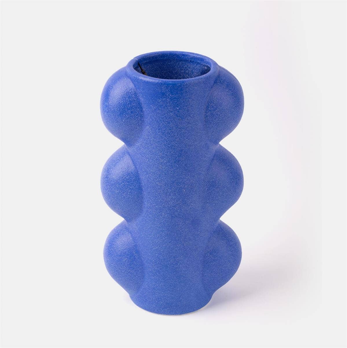 This vase has a perfect size, making it ideal for displaying a variety of flowers and plants. Its compact yet elegant dimensions ensure it fits well on tables, shelves, and countertops without taking up too much space. The vase features a unique bubble design with a blue reactive glaze finish, creating a one-of-a-kind color and texture on each piece. The 2-layer style gives it a rustic and farmhouse-inspired look that adds charm to any space. The blue color adds a touch of freshness and tranquility Versatile: This vase is perfect for a variety of settings, including living rooms, dining rooms, bedrooms, and office spaces. It can be used to hold fresh flowers, dried flowers like pampas grass, or even as a standalone decorative piece. Its versatility makes it a great addition to any decor style.The vase's elegant design and reactive glaze make it a standout piece in any room. Whether you place it on a mantel, side table, or desk, it will instantly elevate the decor. Measures 4.33x2.36x5.7"