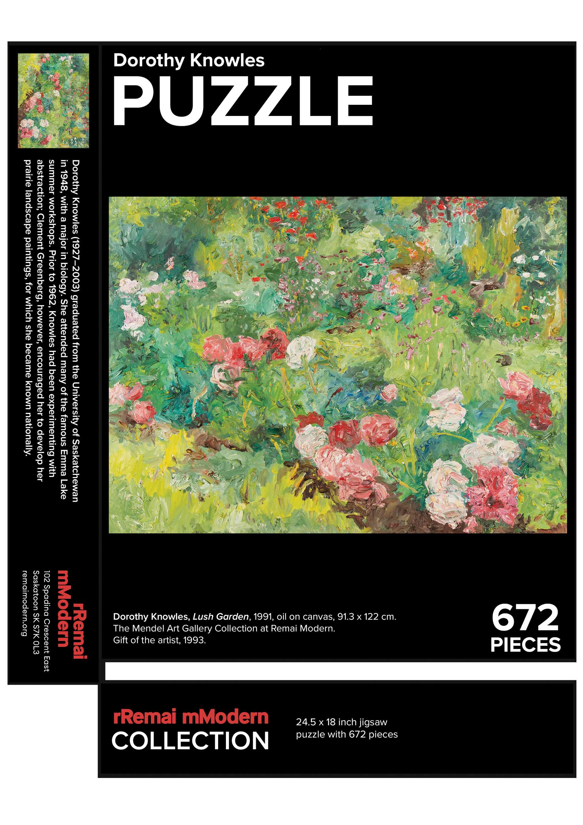 Remai Modern Collection Puzzle. This 672 Piece puzzle features Lush Garden by Dorothy Knowles.