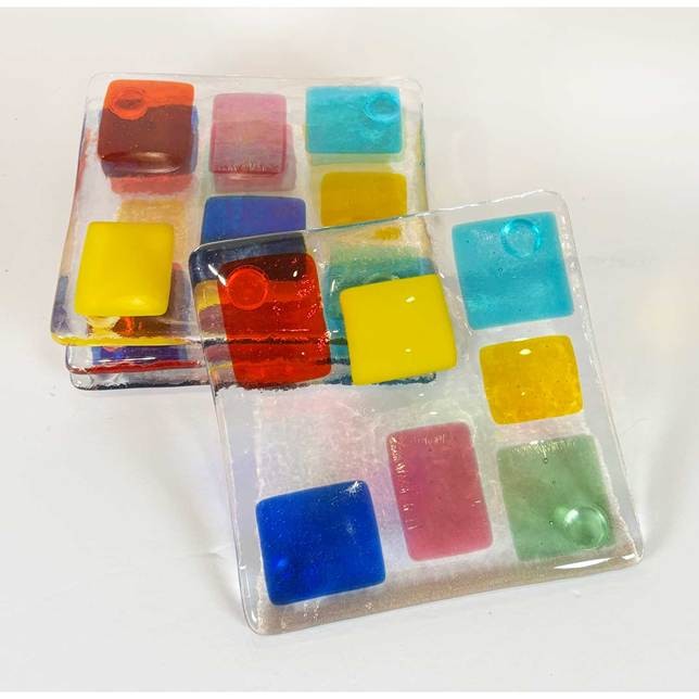 This set includes four glass coasters that glow in vivid colors. Crafted in Kitchener, ON, Canada, Renato combines his engineering background with fine arts expertise to deliver meticulous craftsmanship and visual harmony in each piece. Drawing inspiration from his travels, his creations emit striking light and color effects.