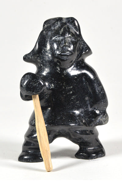 Stone carving with painting titled "Hunter" created by artist Johnnysa Taoaungai. Dimensions are approximately 5 inches by 3 inches.