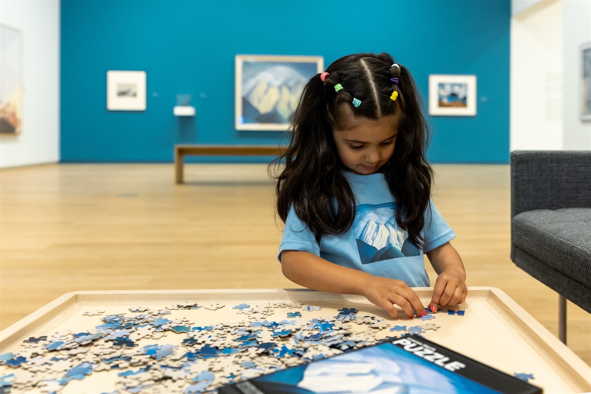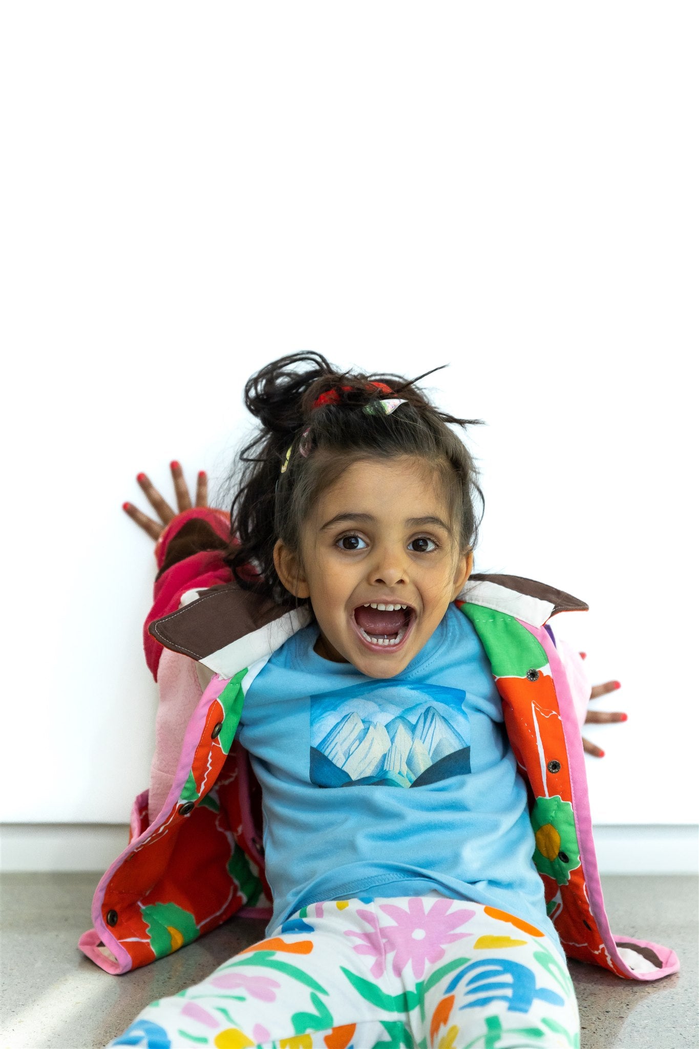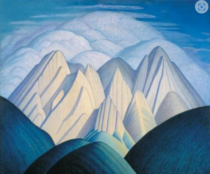 Remai Modern Collection: This darling toddler t-shirt features Lawren Harris' iconic Untitled (Mountains Near Jasper) Image on a powder blue coloured fabric.