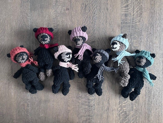These soft and squishy crocheted animals are handmade in Saskatoon by Frieda Gesioroski for Mum Makez. Comes with removable hat and scarf. Assorted Colours.