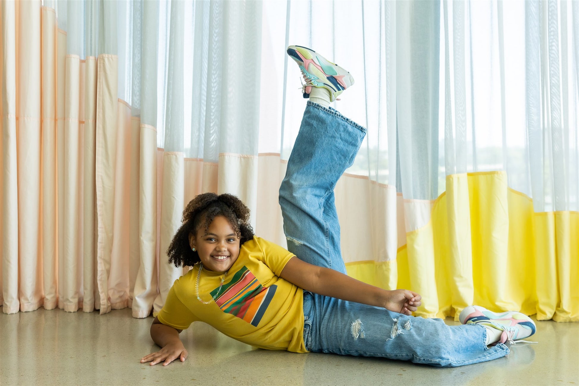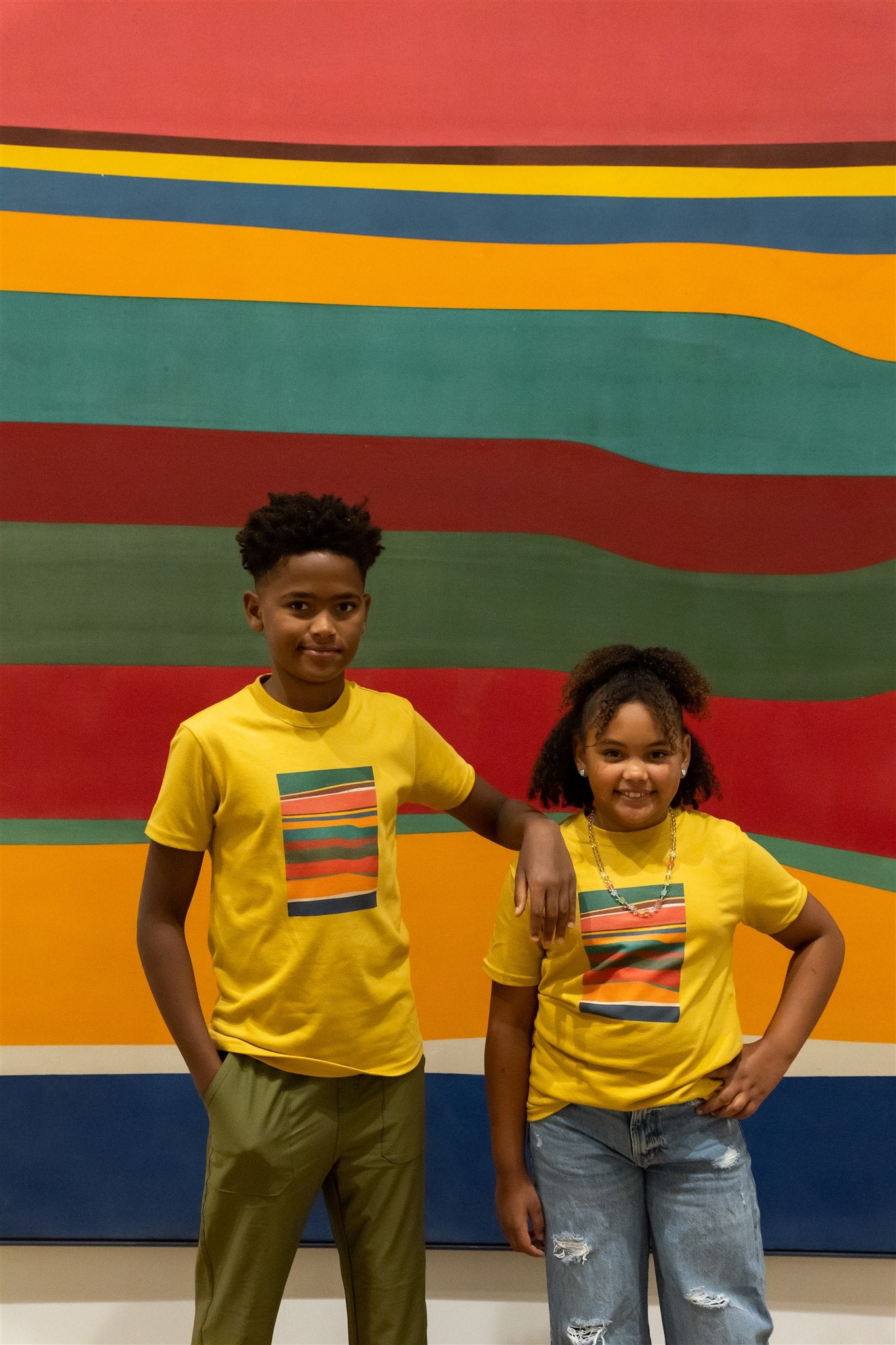 Remai Modern Collection: This distinct unisex Youth t-shirt features La Plonge #7 by William Peredhudoff on a Mustard coloured fabric.