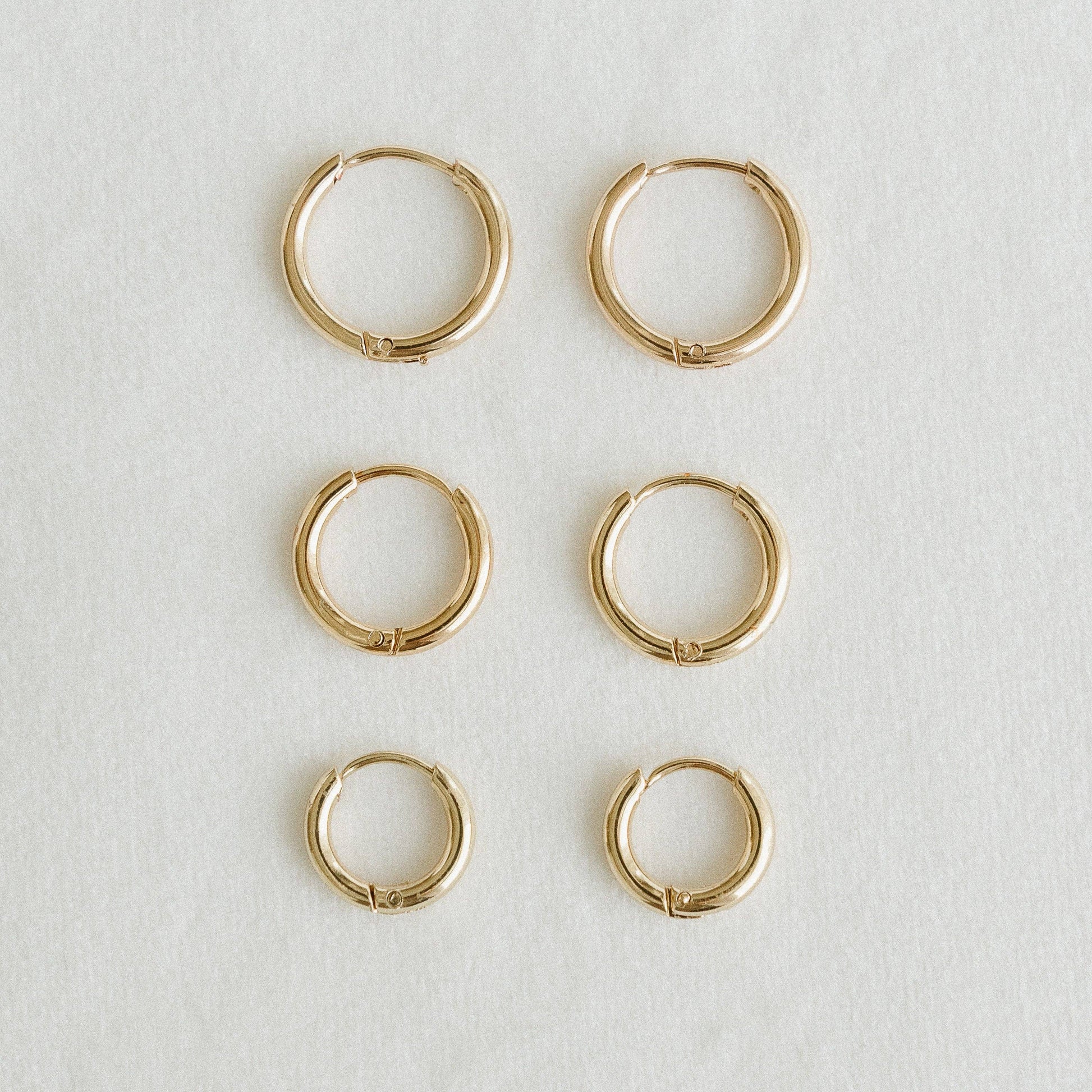 Classic gold hoops with a sleek, polished finish that never goes out of style. Lightweight and versatile, they’re the perfect everyday essential for effortless elegance. Available in size mini (12mm), medium (14mm) and large (16mm). * Premium Stainless Steel + 18k gold PVD coating * Waterproof & Sweatproof * Hypoallergenic & Lead-free.