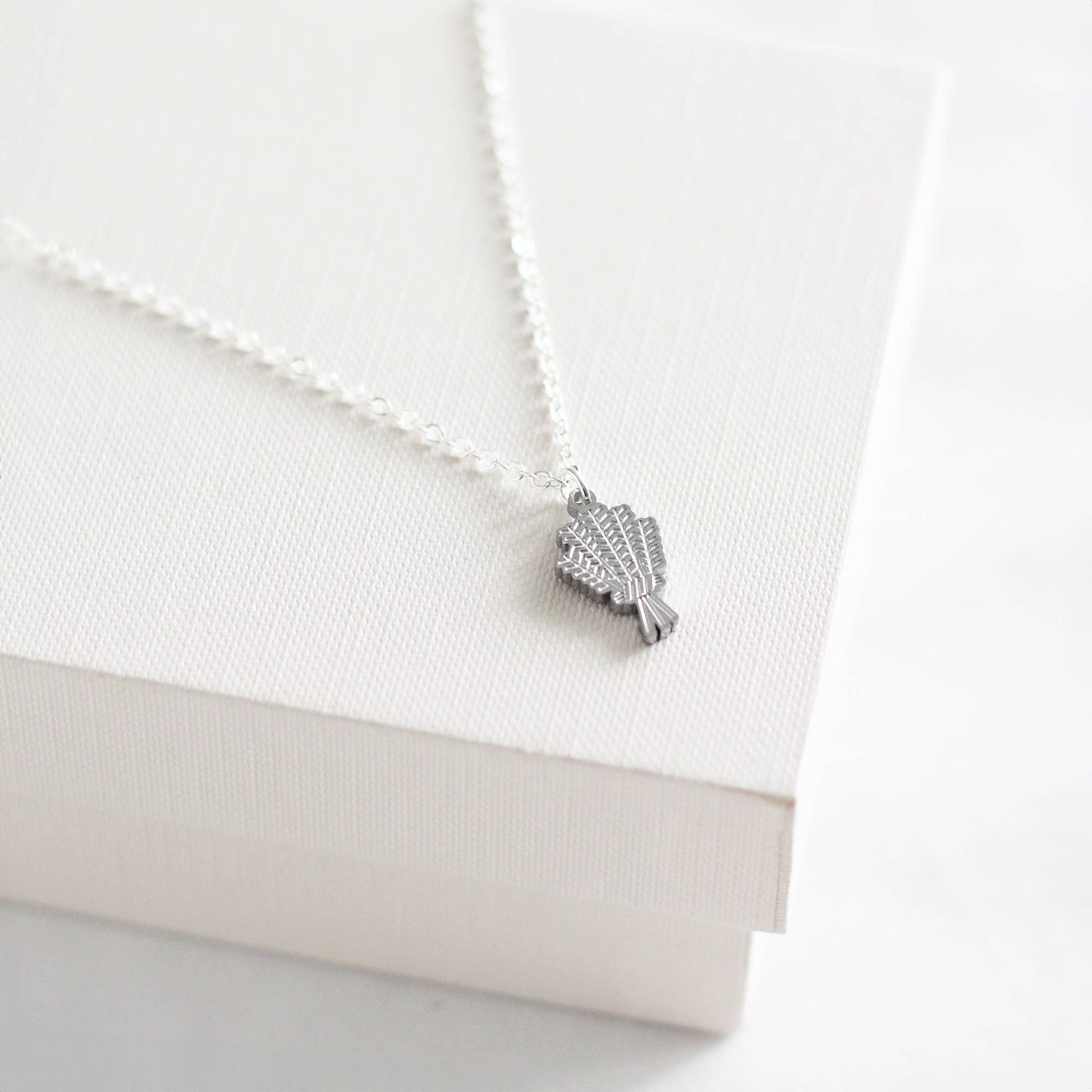 Representing the Canadian Prairies, this necklace features a bunch of wheat stems hung from a delicate chain. ○ 18k gold or silver plating; brass core chain; nickel-free. ○ Chain length: 18 inches. ○ Approximate charm size: 15 mm. ○ Signature lobster clasp closure.