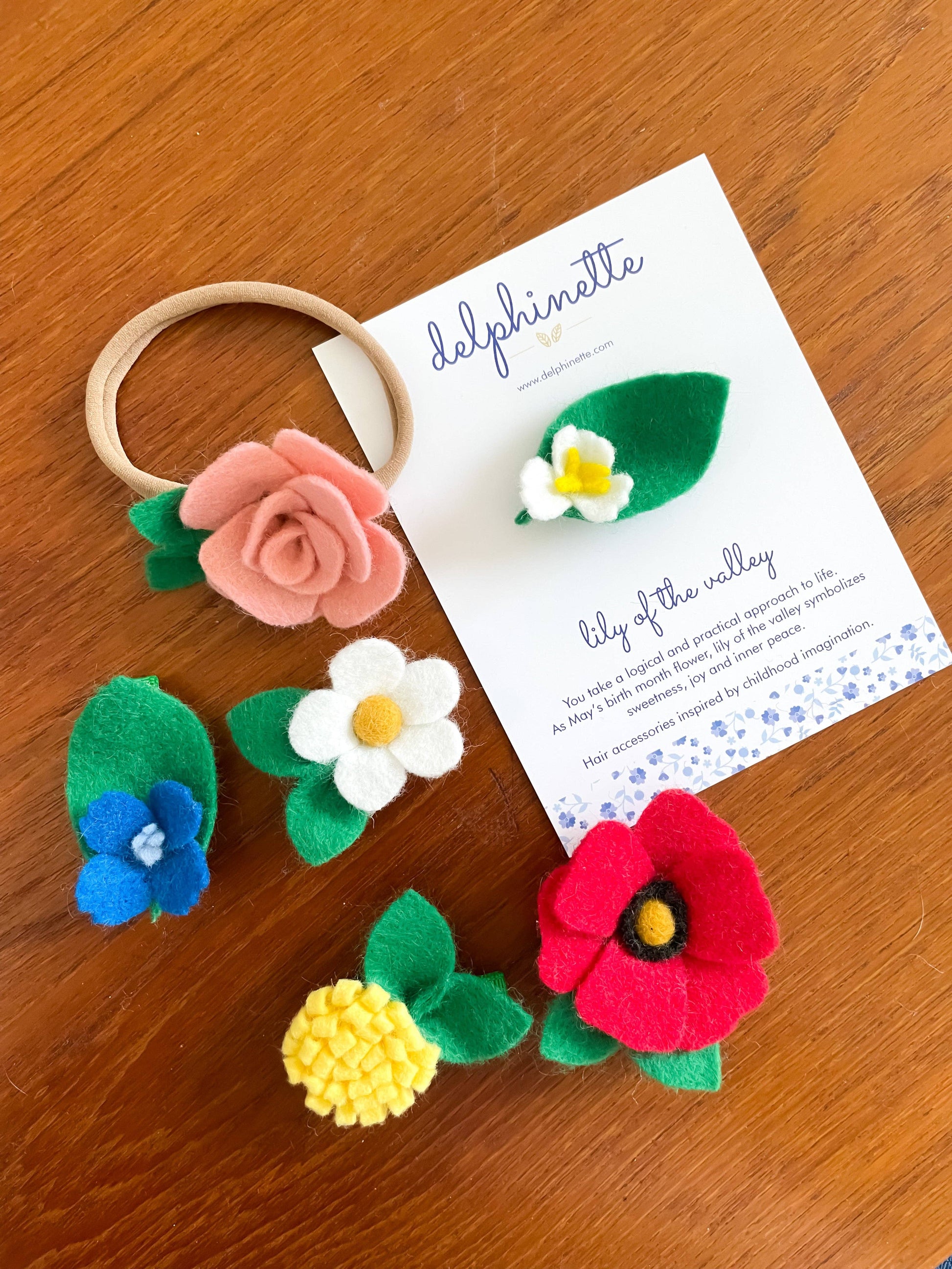 Handmade in Calgary, AB by Angela Tulio who along with her young daughter imagine and create charming felted children’s hair accessories.